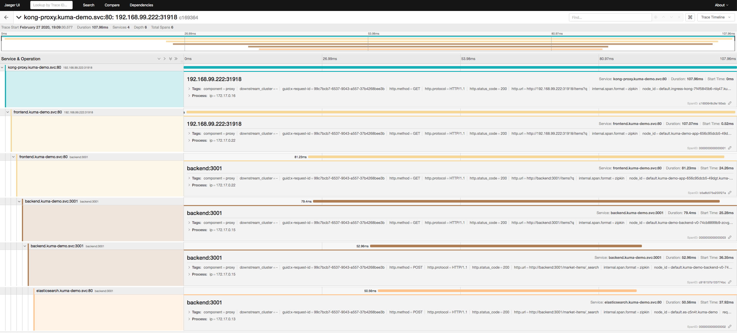 Kuma now supports L7 tracing with configurable tracing backends by leveraging the new TrafficTrace policy. It supports Zipkin and Jaeger out of the box, and it allows users to better identify the flow of traffic among our services in order to identify dependencies and bottlenecks in our systems.