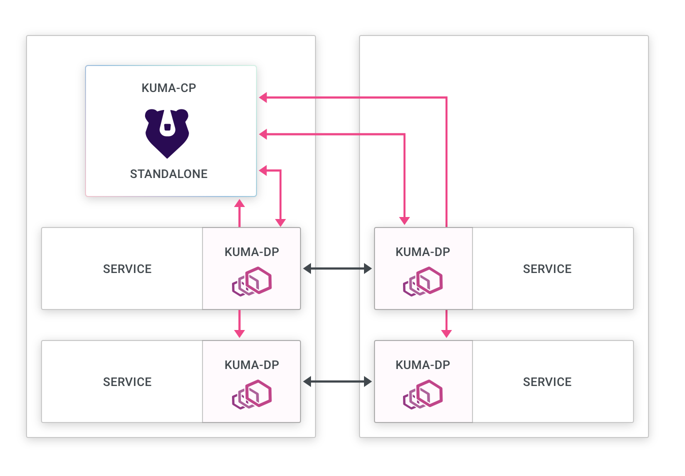 This is the simplest deployment mode for Kuma, and the default one.